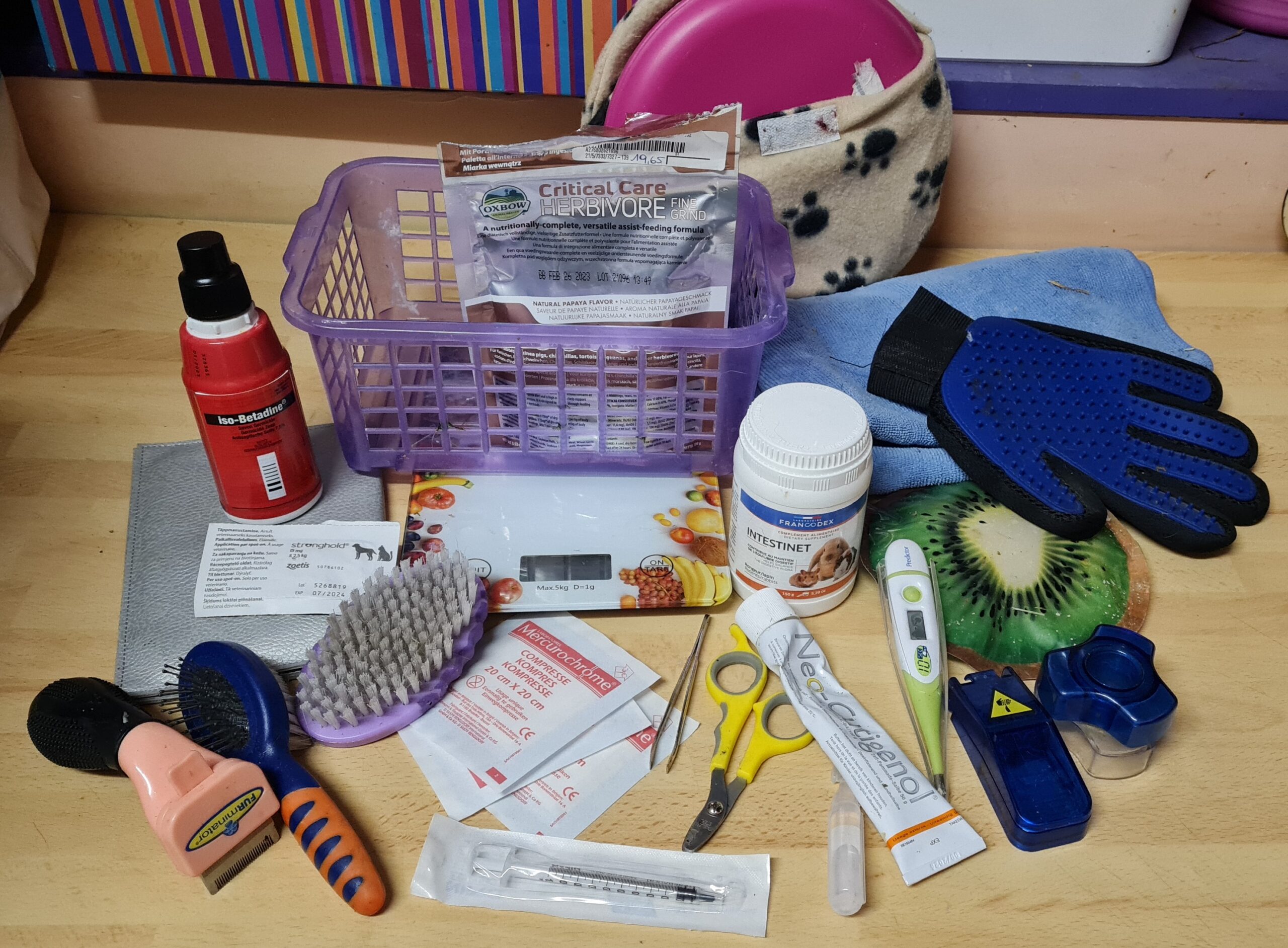 Avec tout ça, tu devrais pouvoir assurer l’hygiène et le confort de ton minus au quotidien, vérifier son état de santé ainsi qu’assurer les soins prescrits par le vétérinaire…